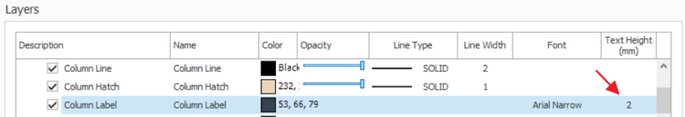 - Adjust the "Text Height (mm)" respectively based on the Description.