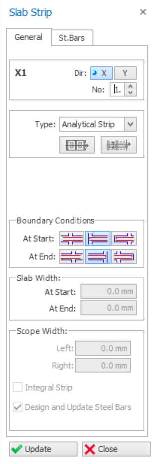 - It is the responsibility of users to cut the 2 orthogonal strips for any slab, in which ever angle. The slab design will not warn if any strip is missing for any slab.