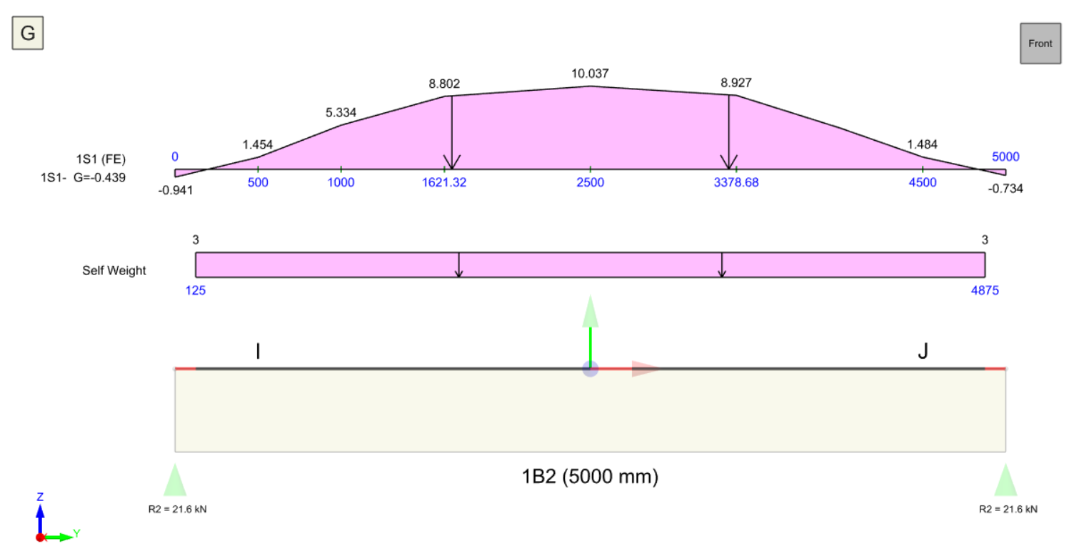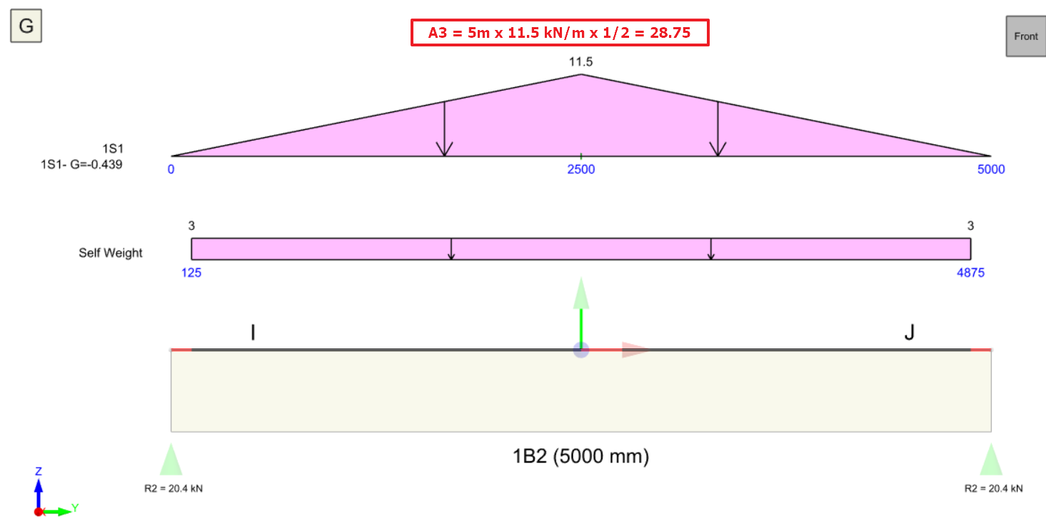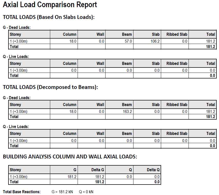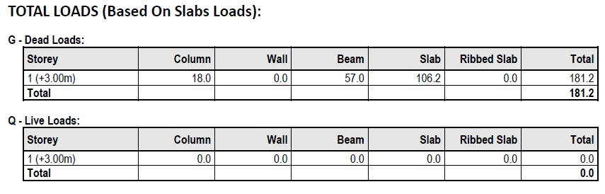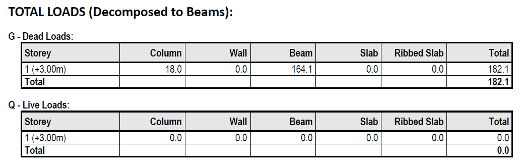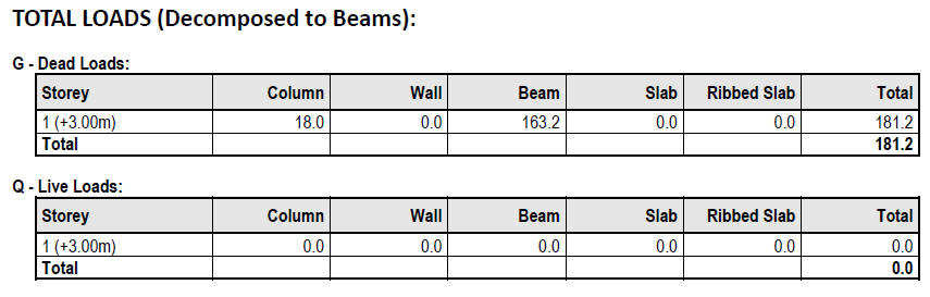 The key difference in this table is that the slab loads are now decomposed and thus counted as UDL’s, VDL’s etc. on the supporting beams. Therefore, you will find that the slab loads become zero, but the beam loads increase accordingly.