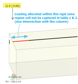 - Loading applied onto rigid zone (red). This loading will not be captured in table 1 and table 2 but correctly captured by table 3 (Building Analysis Result).