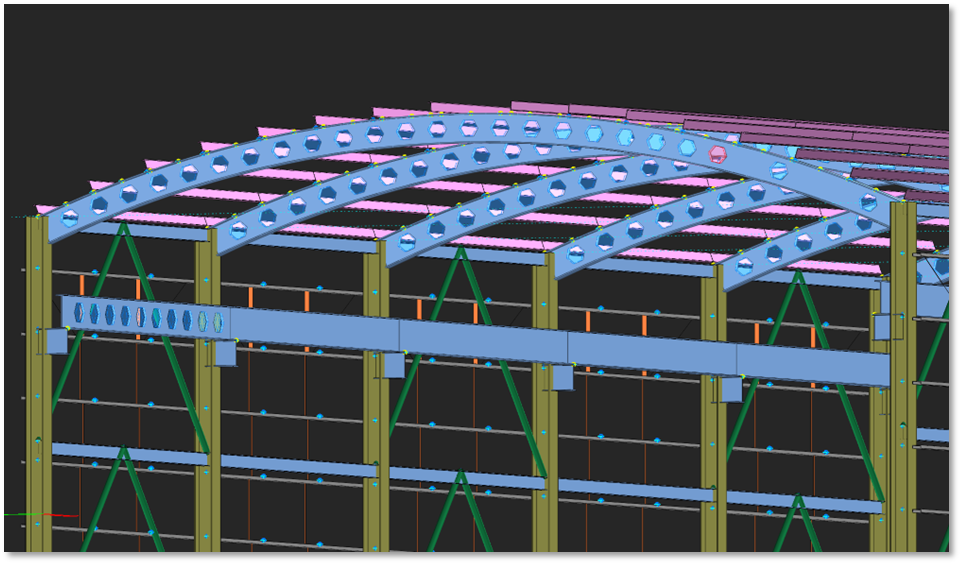 limitations. The openings in the beam web allow for easy passage of piping.