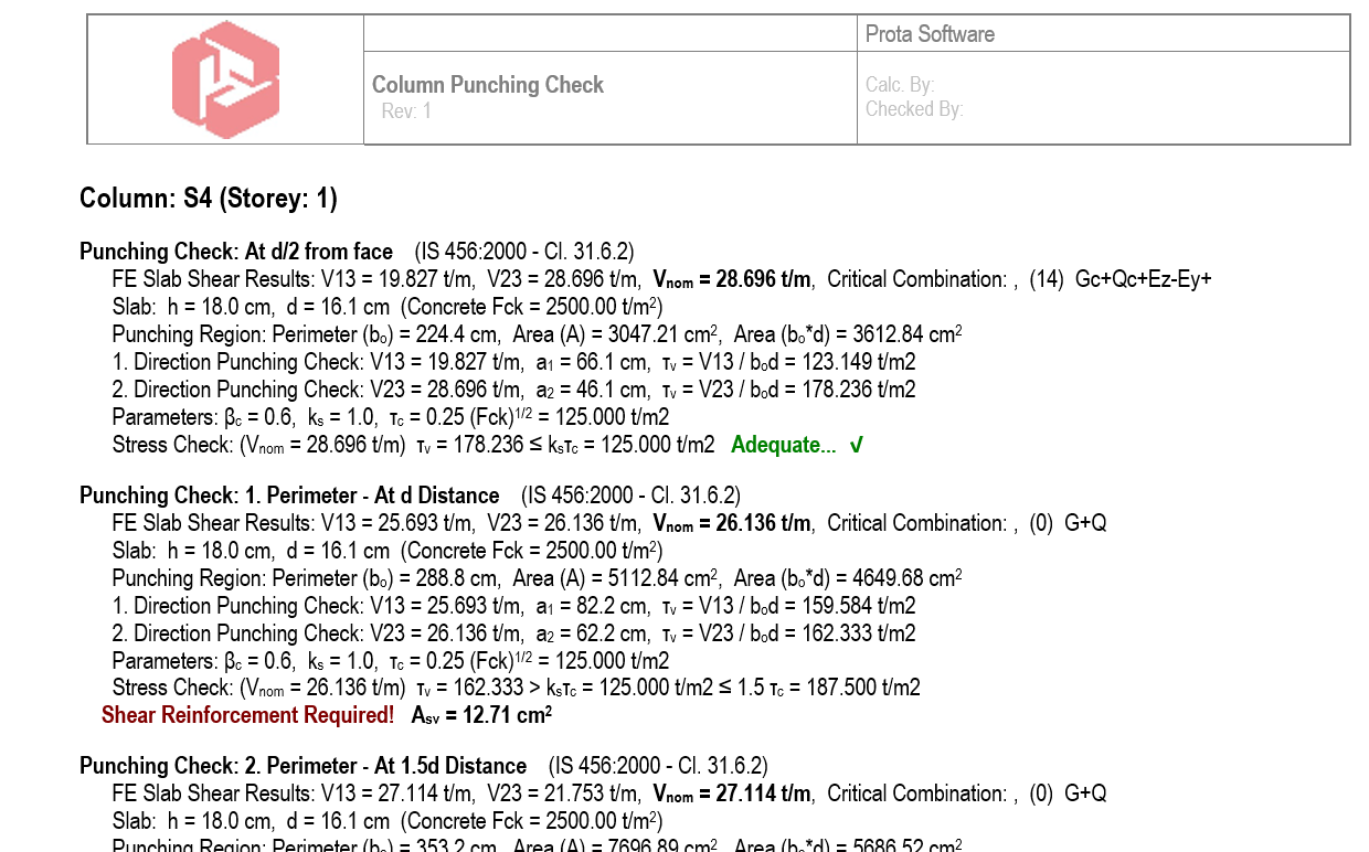 However, if the punching stress is larger than concrete tensile strength then the punching reinforcement is calculated by ProtaStructure.