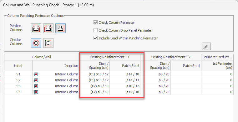 Existing slab reinforcement and additional patch reinforcement (if any) will be considered as punching reinforcement.