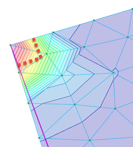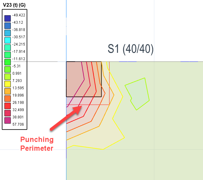 Figures above : V23 shear contours and punching station points for envelope combinations in analysis post-processor.