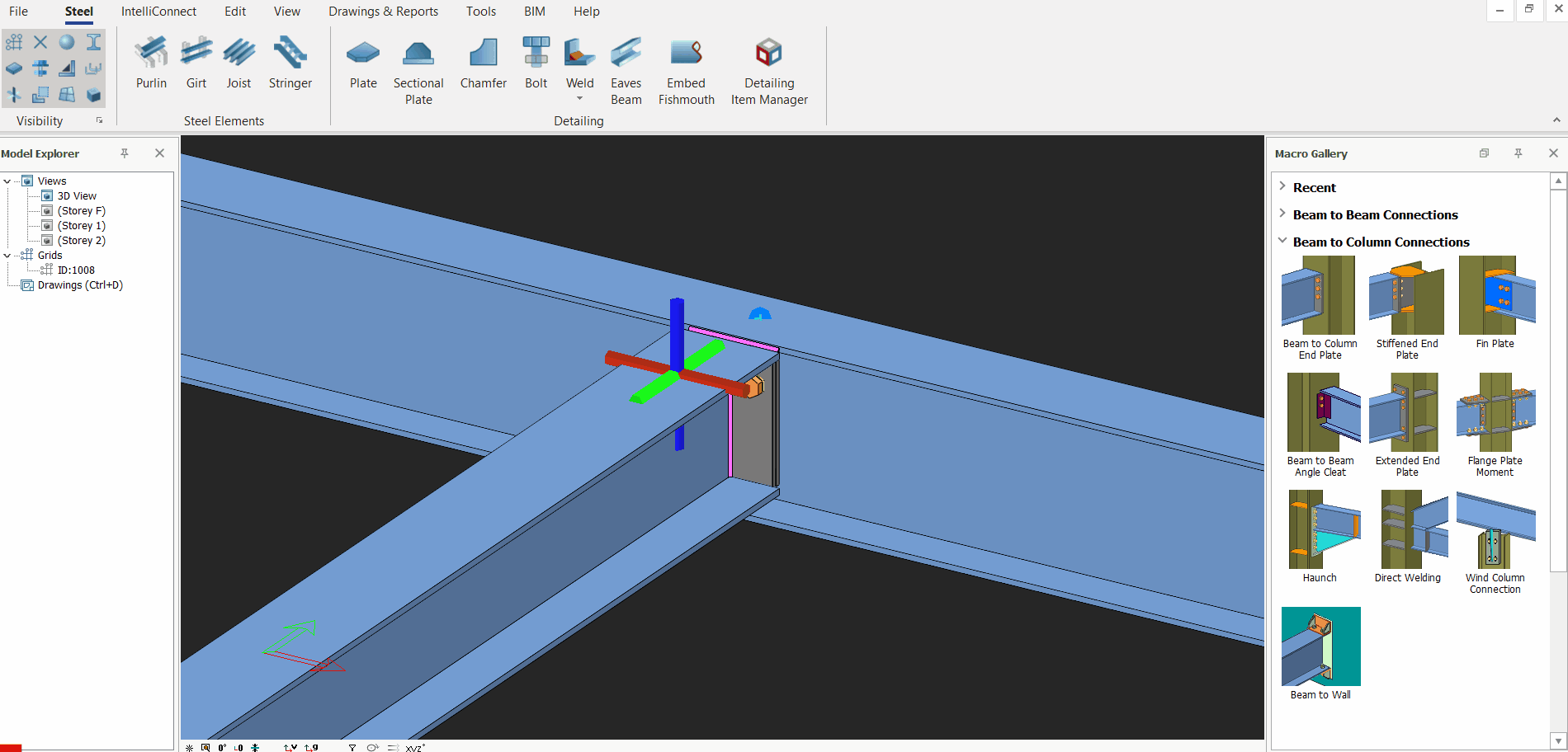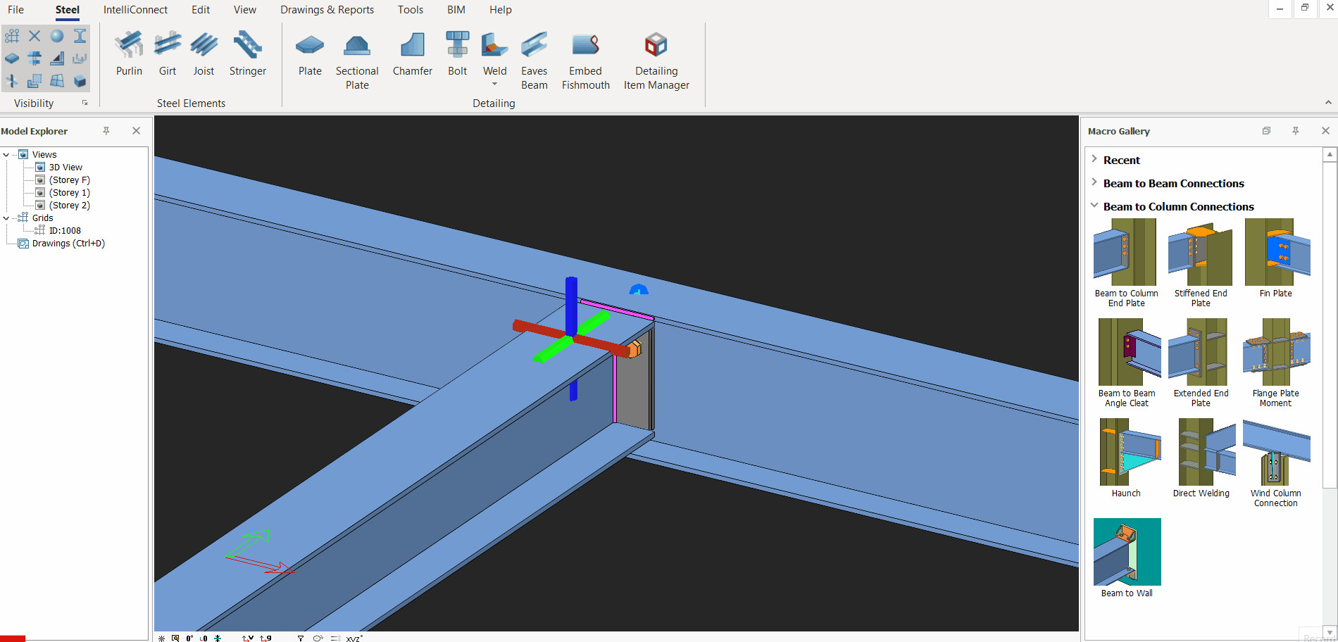 Most of the icons in ProtaSteel such as connections, purlins, sag rods & girts are called “macros”. A macro is generally defined as a shortcut tool that specifies how a certain input sequence will result in a desired output according to a defined procedure. The instruction on how to use each macro is shown in the tooltip if you hover the mouse cursor over the icon.
