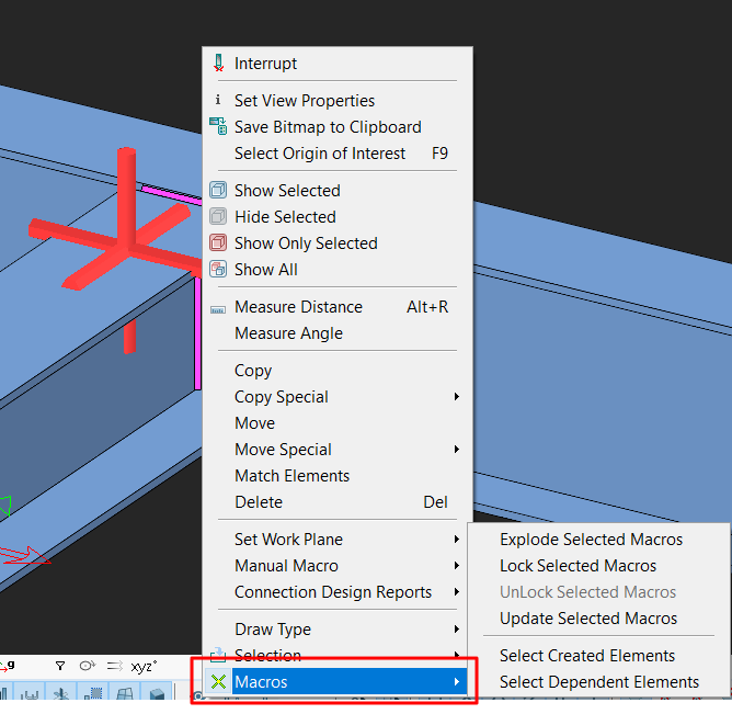 - Select any element or component of the macro (e.g. a plate of a connection)