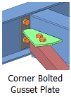 A corner bolted gusset plate connection will be created joining the top plate of the previous stiffened end plate connection.