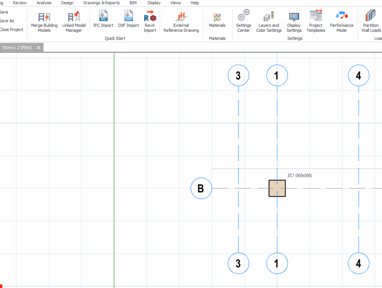 Axes perpendicular to the axis of symmetry will be extended automatically to create intersections with the mirrored axes. For example, the Axis B in the GIF below is automatically extended so the mirrored column can be inserted in the intersection point of Axis B and Axis 1'.
