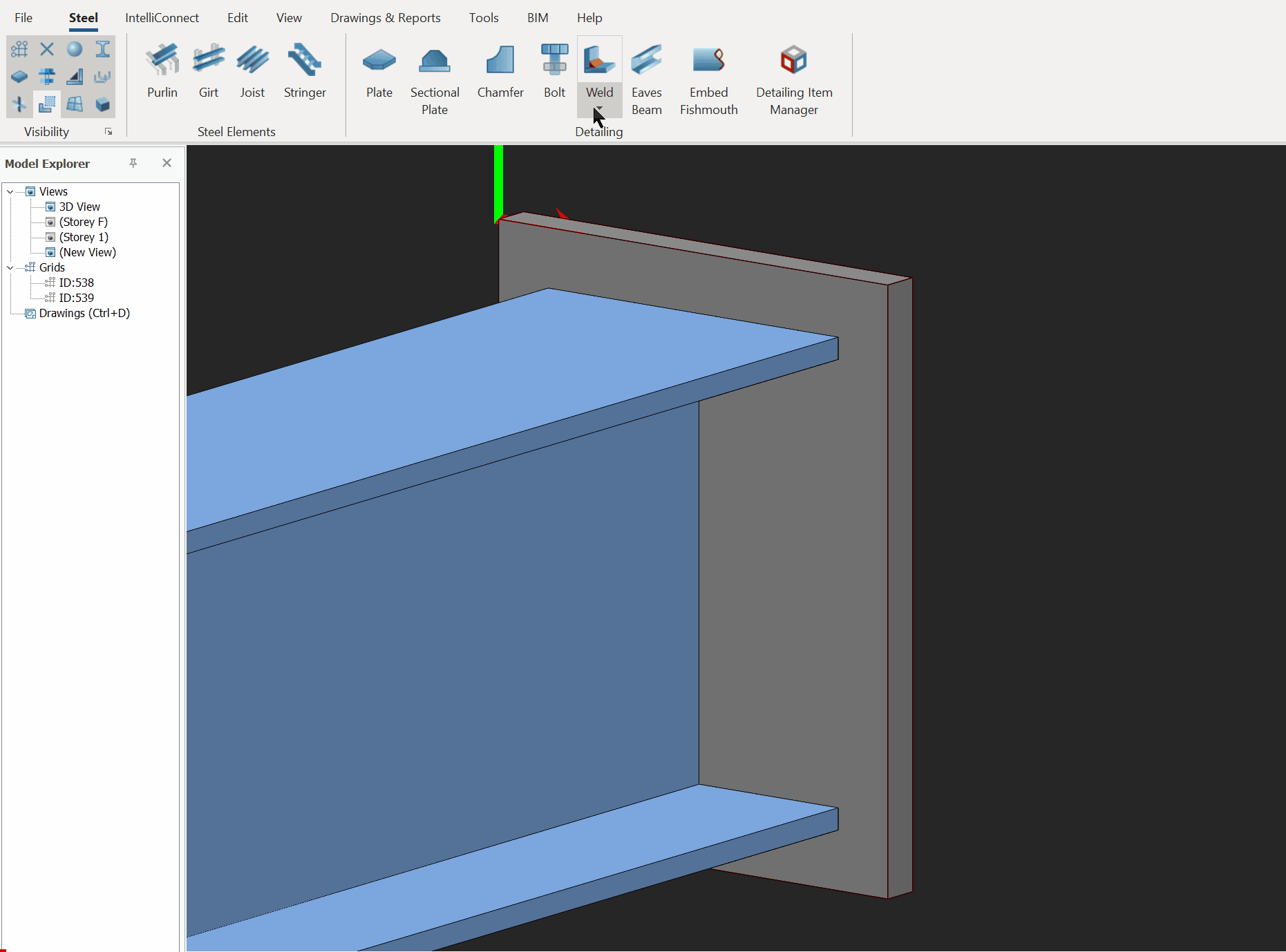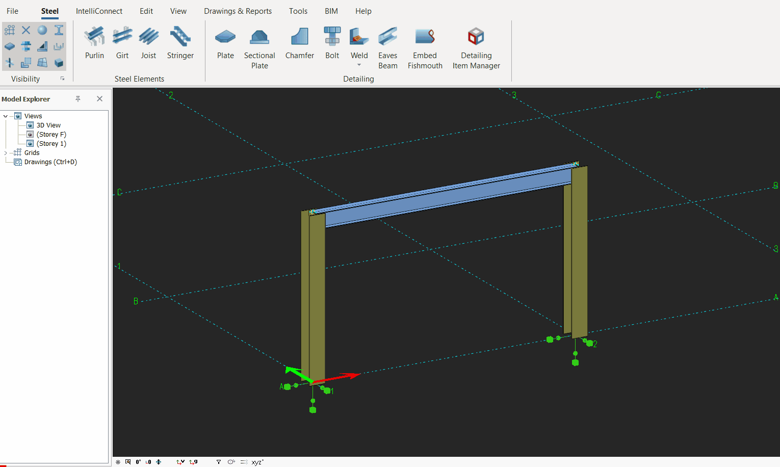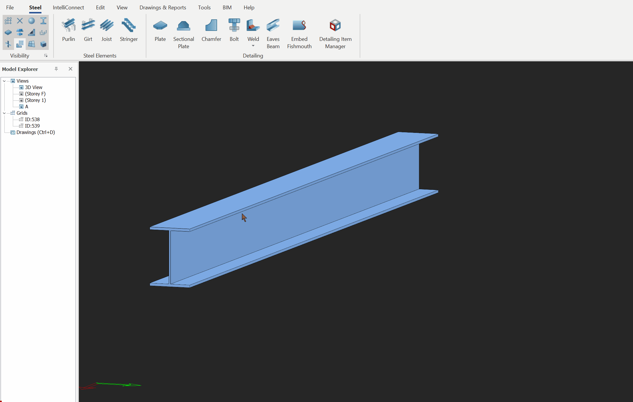 Each type of element is defined with different command. These commands are accessible from the Steel Ribbon: