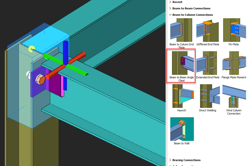 - Click on the icon and select an object (e.g. plate) to be bolted.