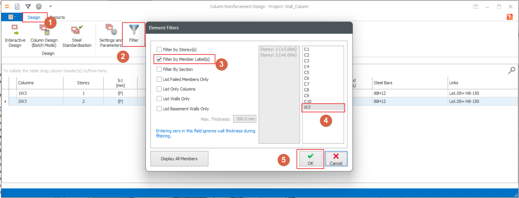 2. Use “Filter” to filter the merged RC walls by clicking “Filter”