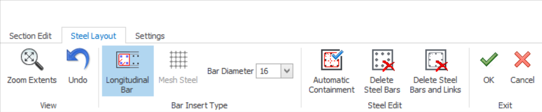 Step 2: Under Steel Layout tab > click “Delete steel bars and links” to remove all the default steel bar and link (functions shown below).