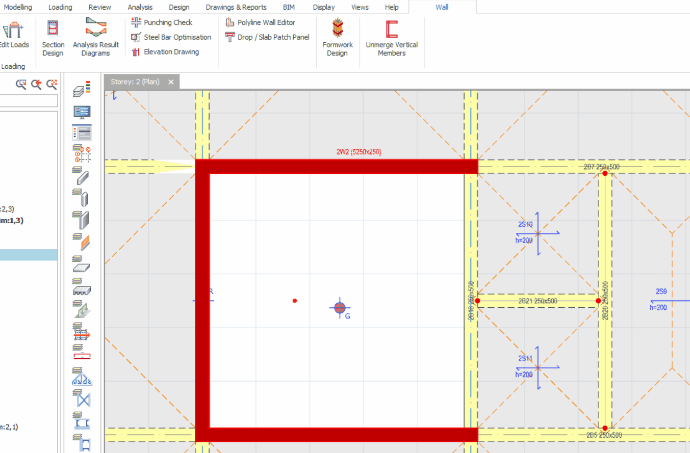 Step 1: Select the merged RC walls on plan view > Right click > Polyline Wall Editor.