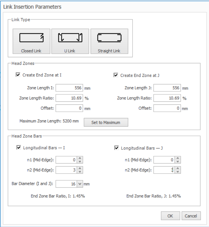 • Under Head Zone, input the exact zone length on both i and j ends. You may uncheck the I or J end zone link if you do not want to insert it.
