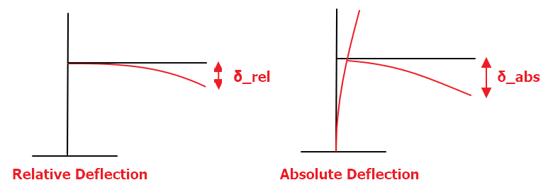 - Relative: The deflected shape is normalized with respect to both start and end points. This is particularly useful in determining the deflection relative to both ends in serviceability checks.