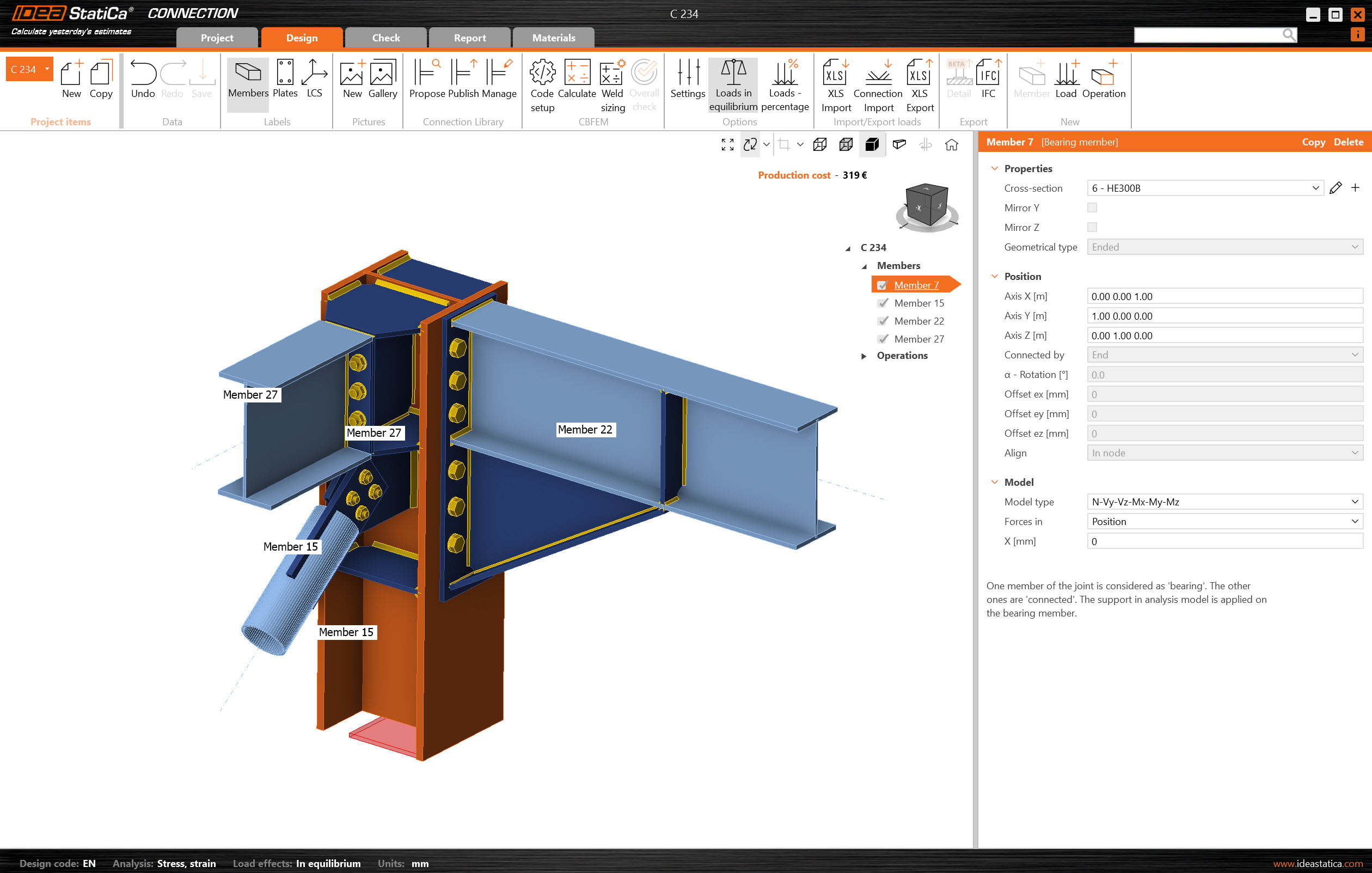 With the IDEAStatiCa check bot, which you can use for such situations, you can transfer the connection members to the IDEAStatiCa interface from the ProtaSteel, and check the connection using the CBFEM analysis.