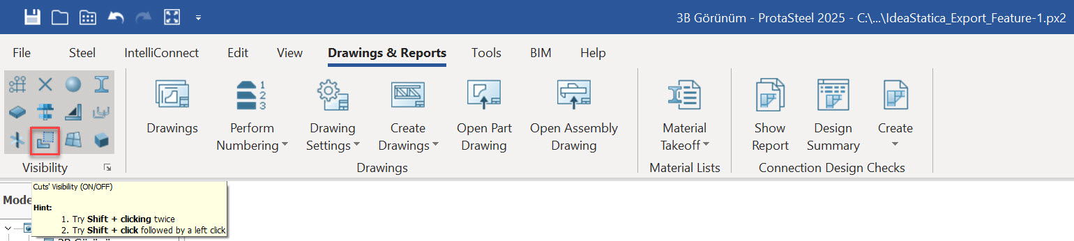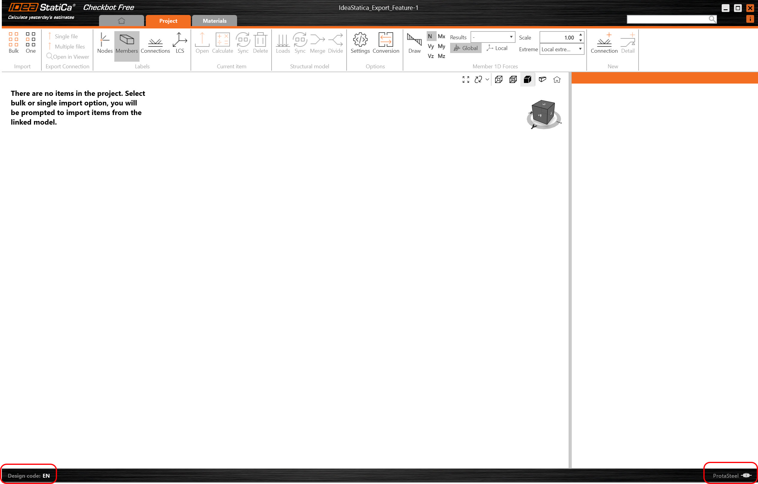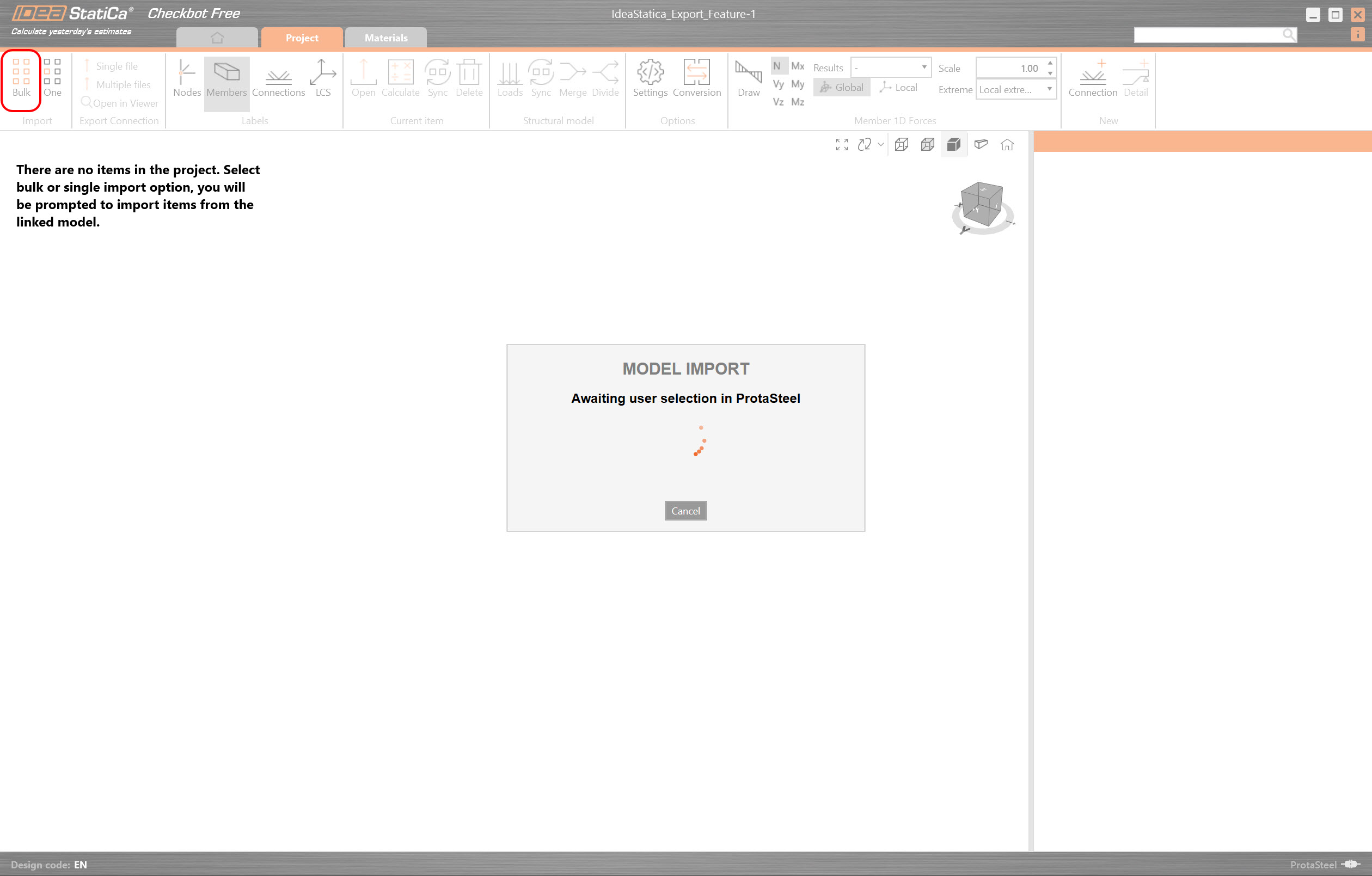 The new Checkbot project is ready to import connections from ProtaSteel.