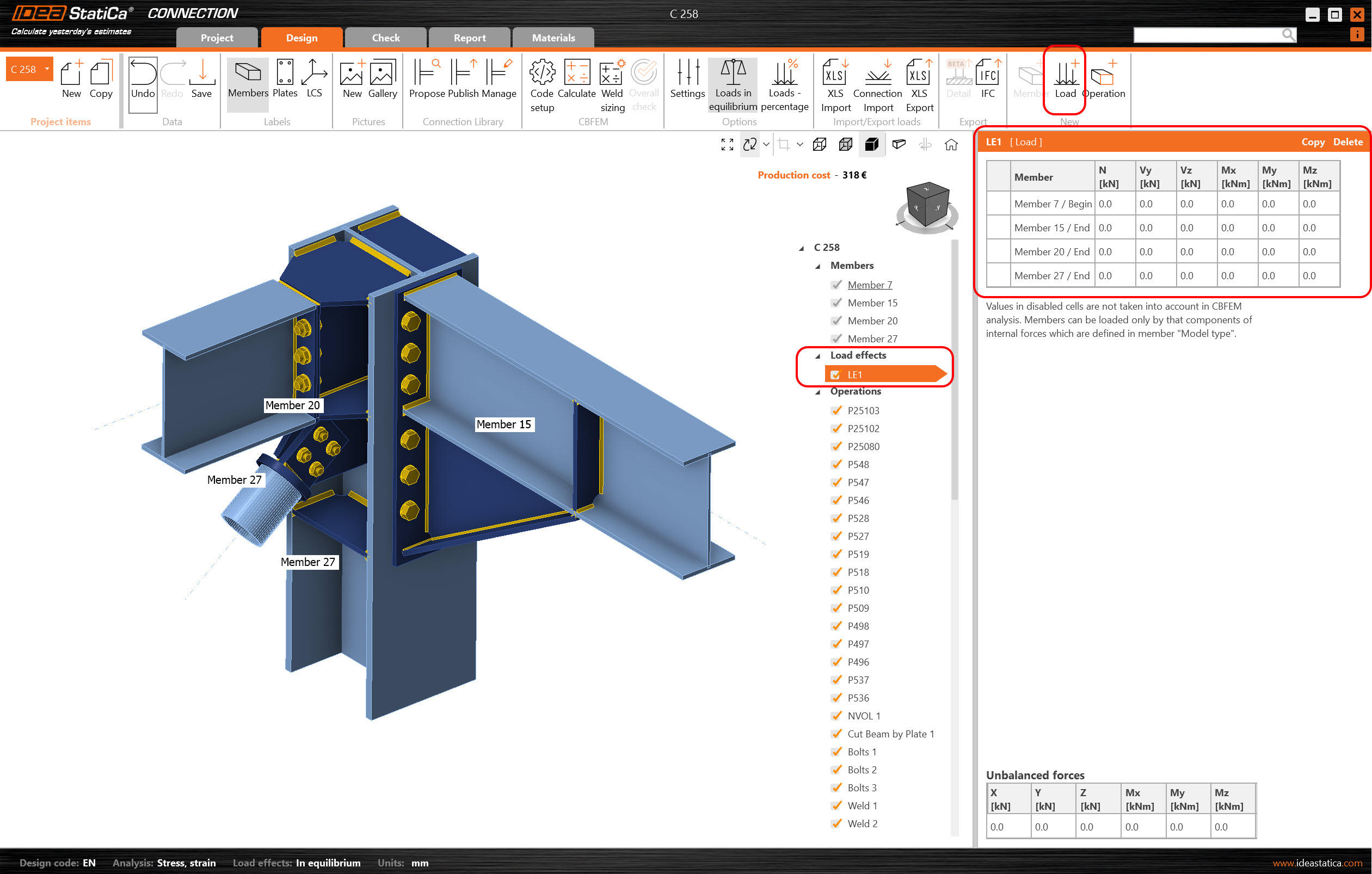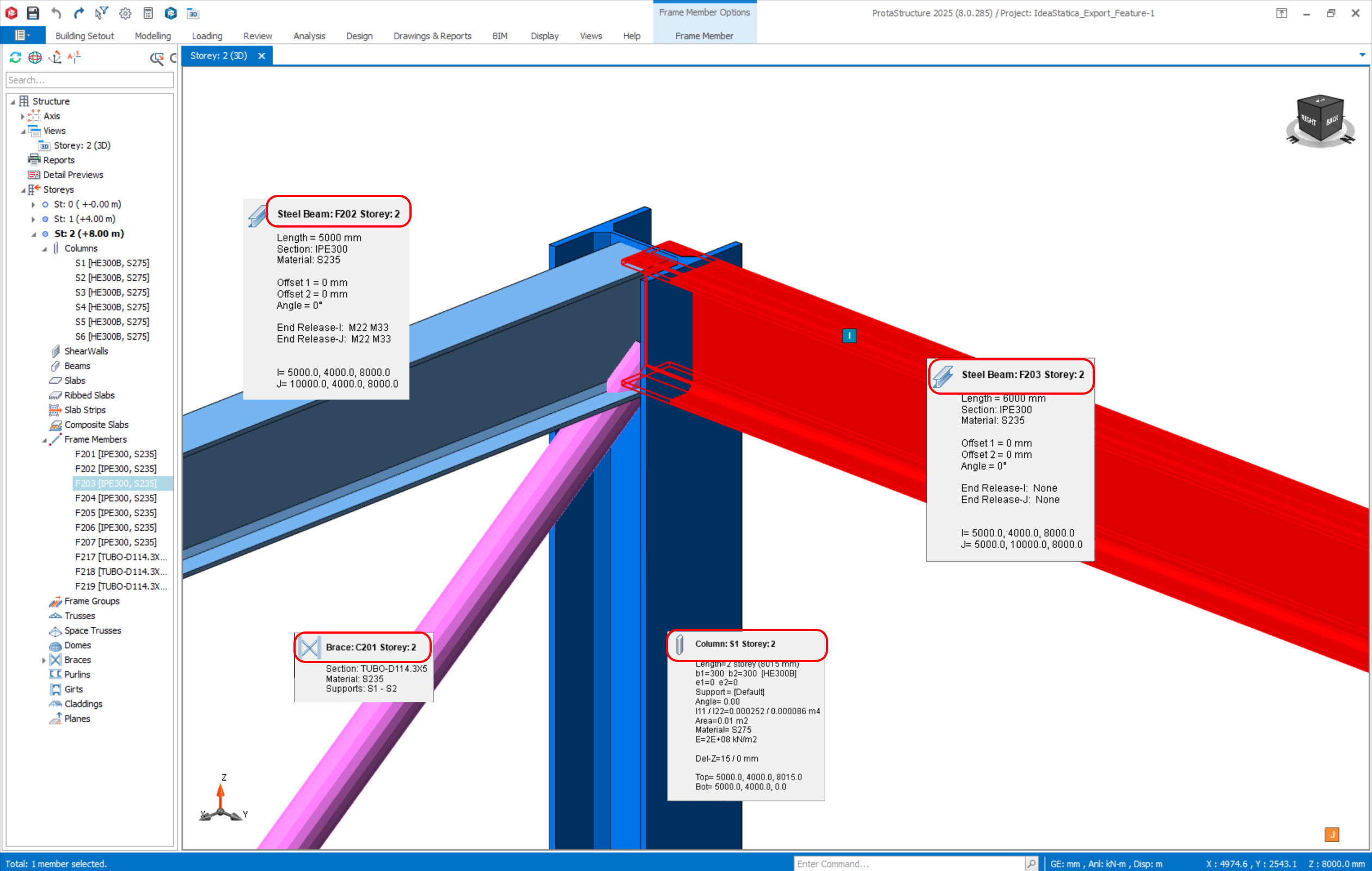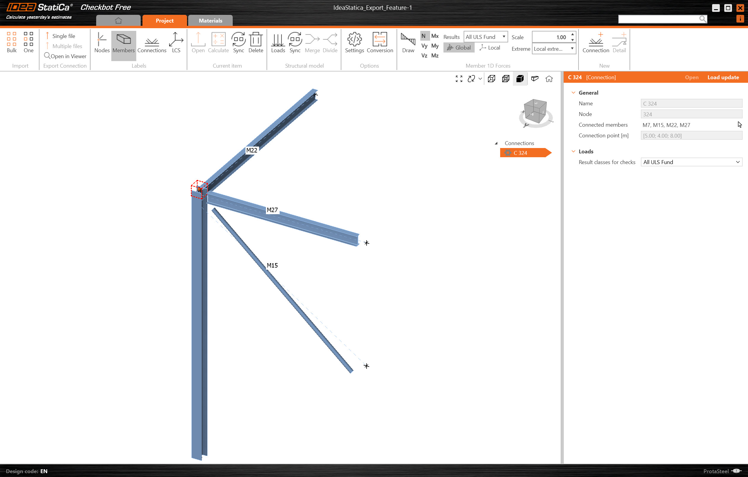 The internal forces to be used in connection design are calculated within the ProtaStructure analysis model. Since automatic internal force transfer to IDEAStatiCa is not yet available must be added to IDEAStatica manually.