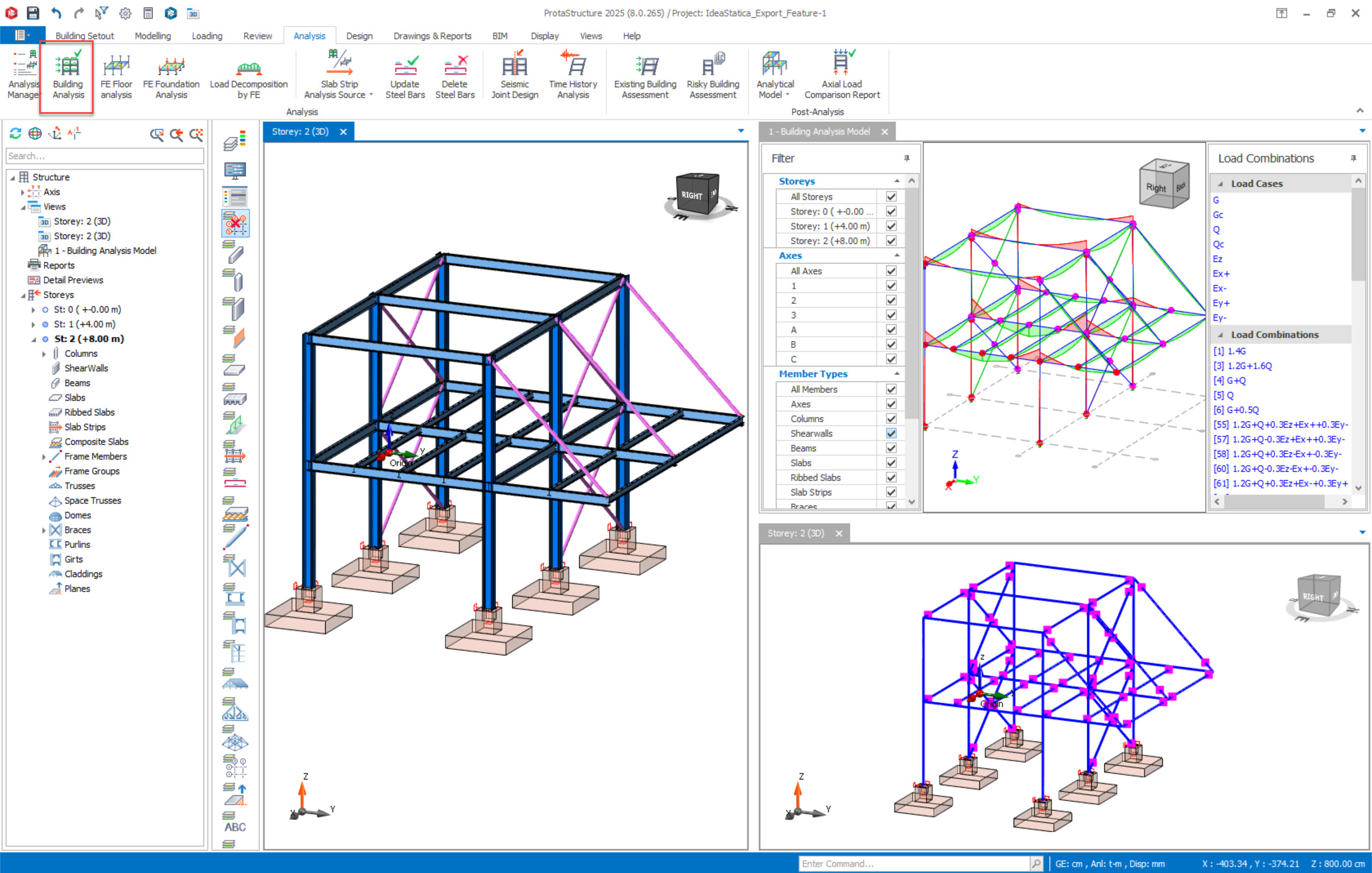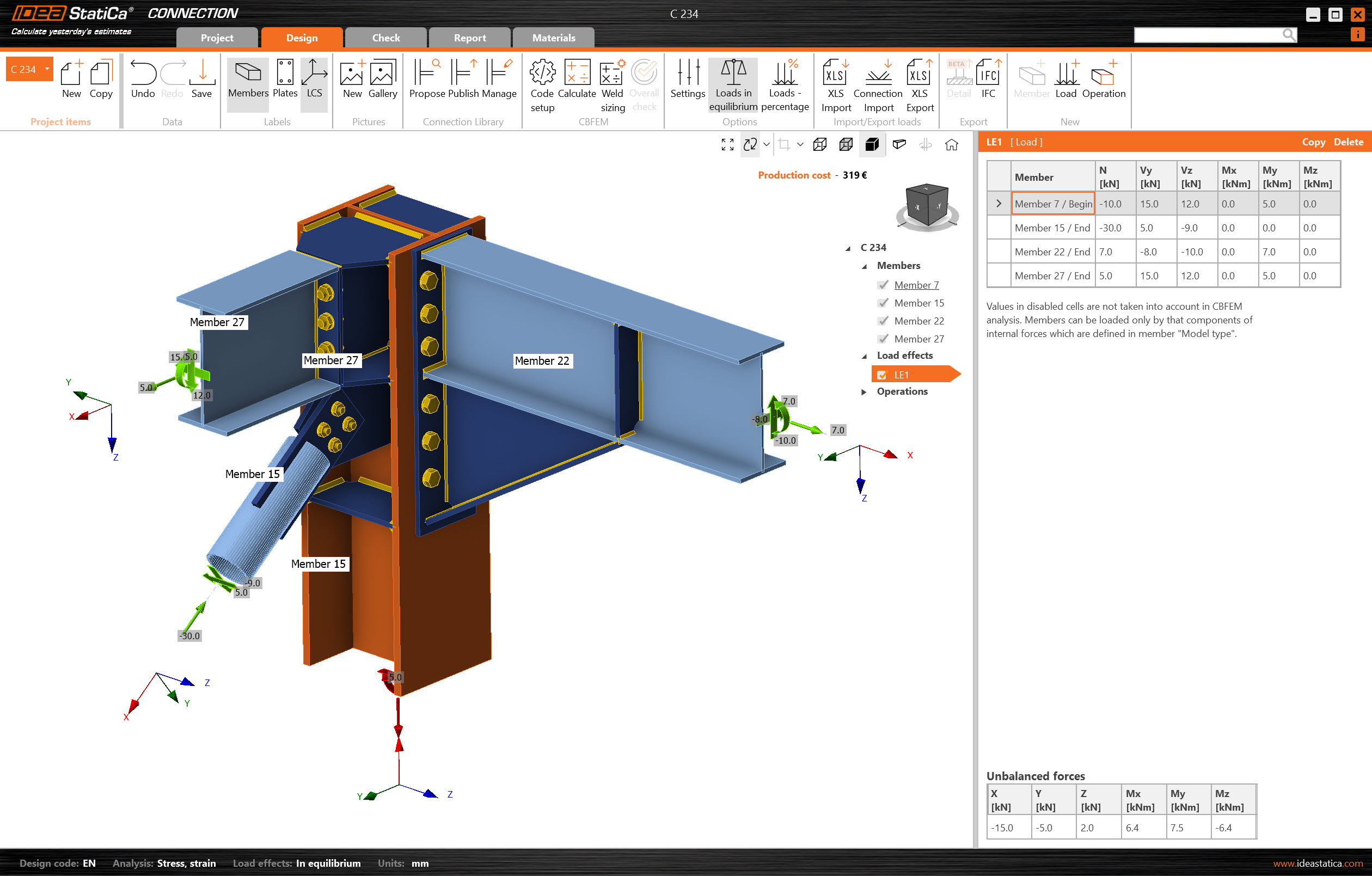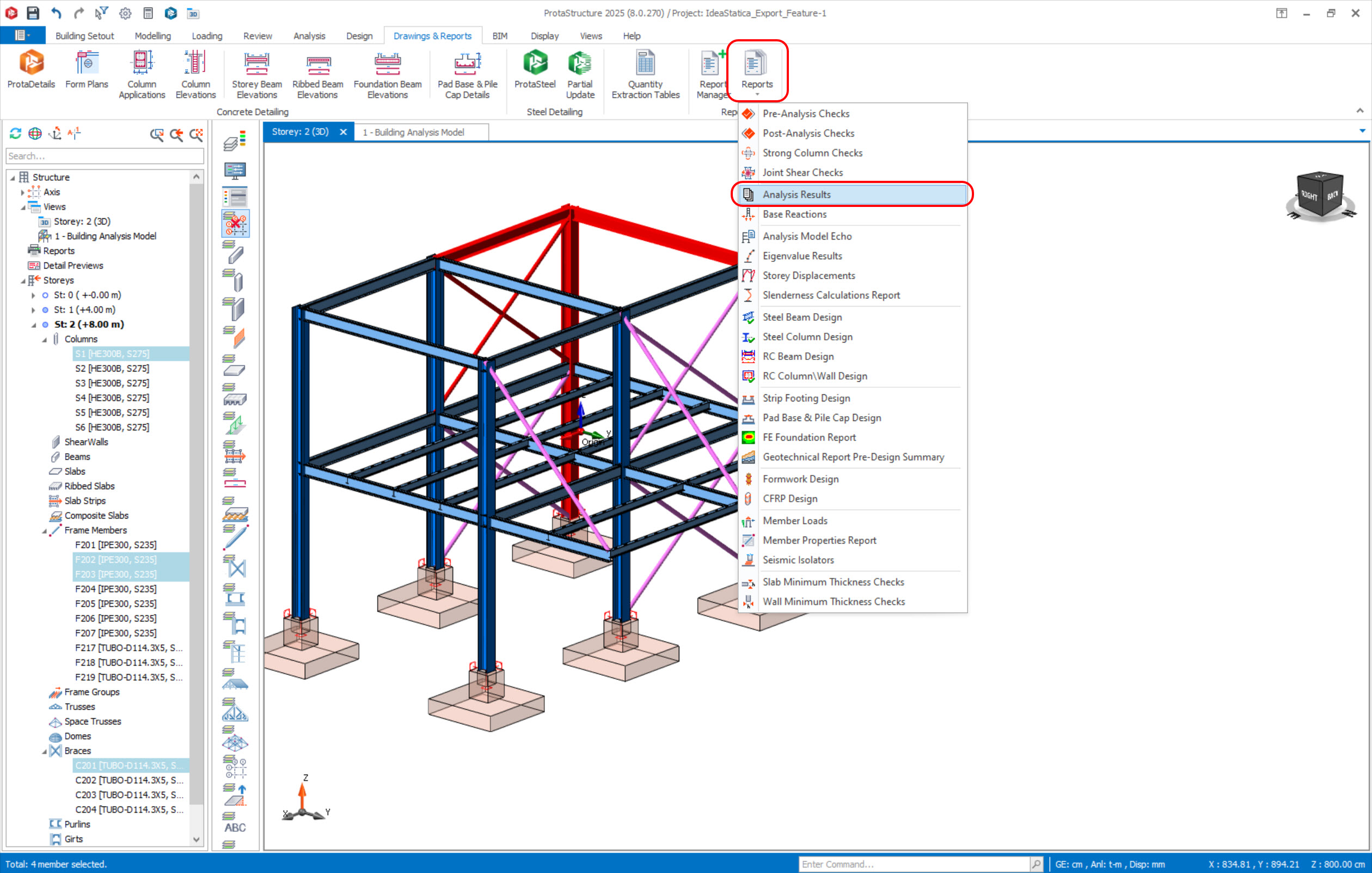 The internal forces to be used in connection design are calculated within the ProtaStructure analysis model. Since automatic internal force transfer to IDEAStatiCa is not yet available must be added to IDEAStatica manually.