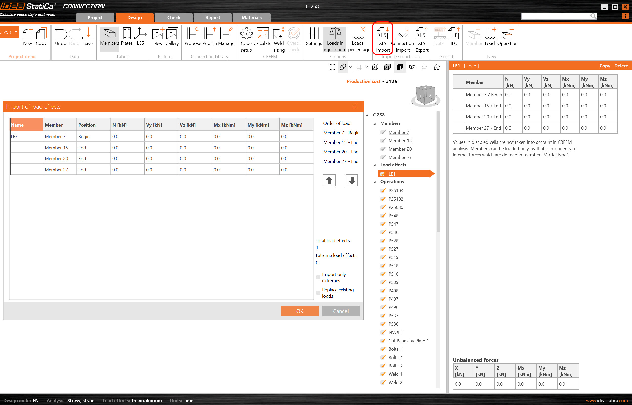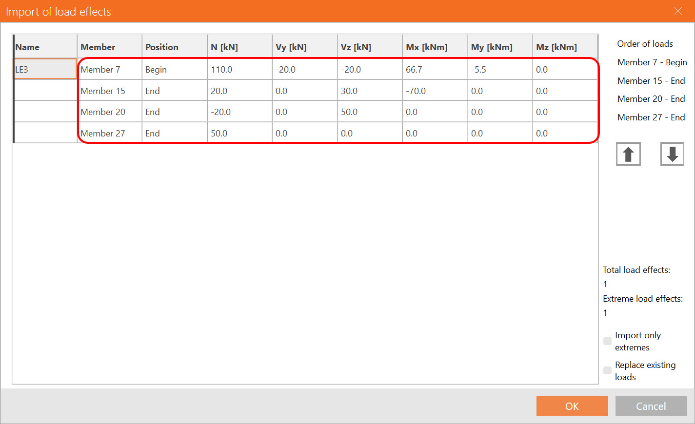 NOTE: Please be aware you need to have the same order of rows and columns in the Excel table as in the Load effects table in the IDEA StatiCa Connection application.