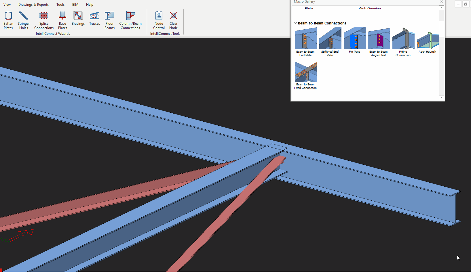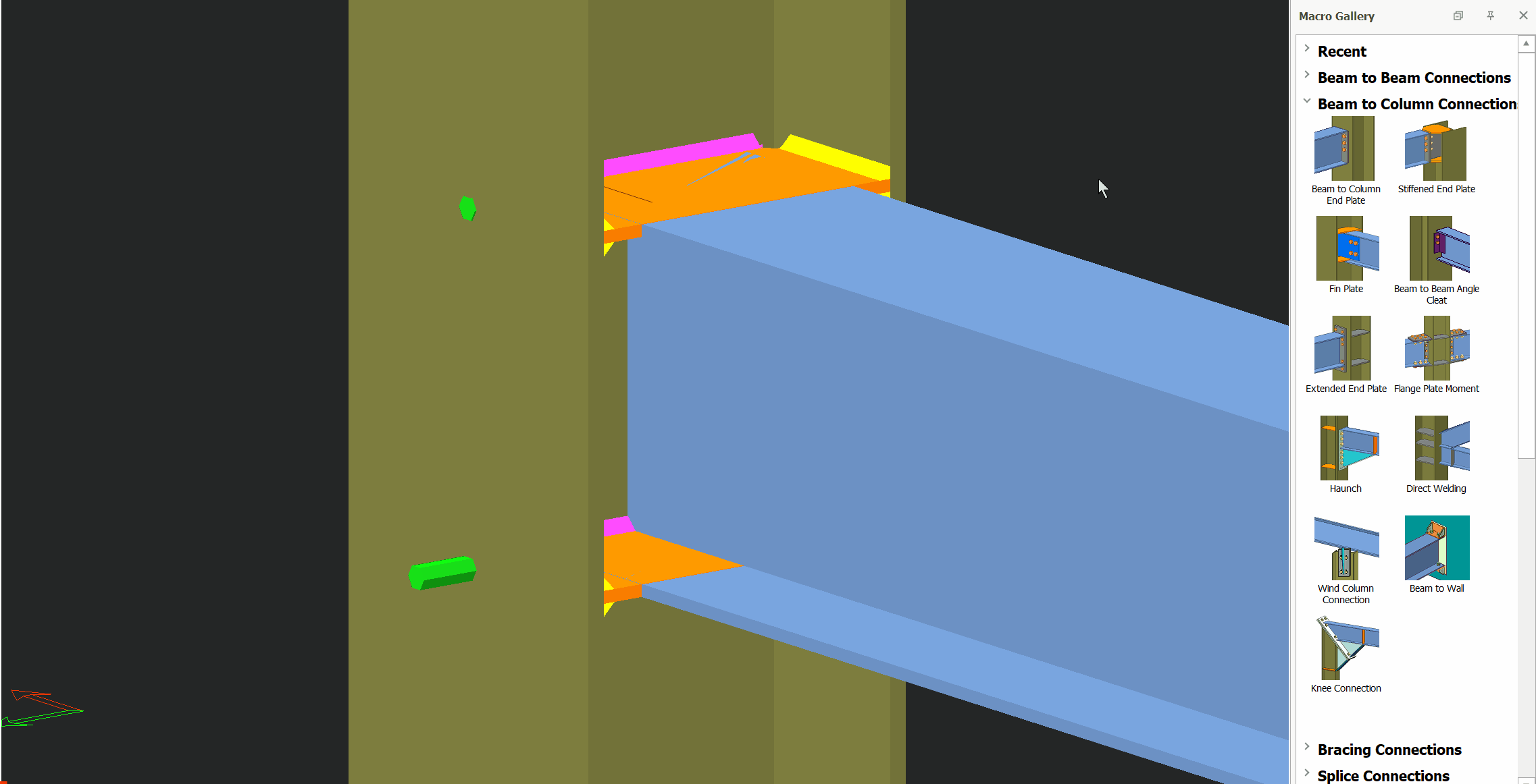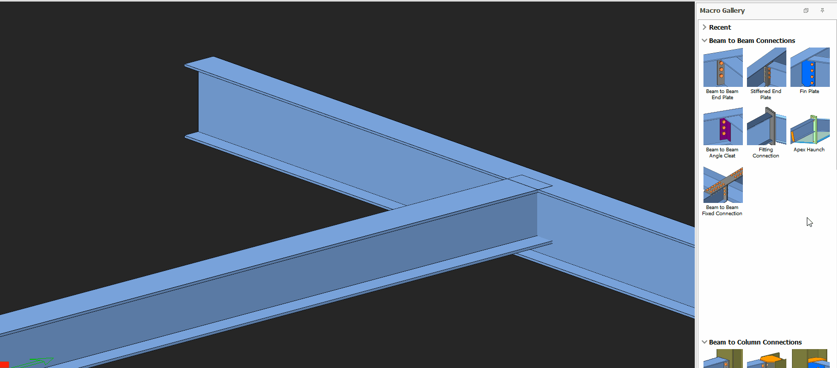 Placing the mouse cursor over the Fin Plate Connection Macro will reveal the tooltip describing the scope and steps of this macro.