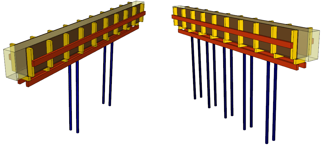 Beam formworks are a combination of column/wall and slab formworks. Side joists and stringers are designed similar to columns, whereas the bottom components are similar to slabs.