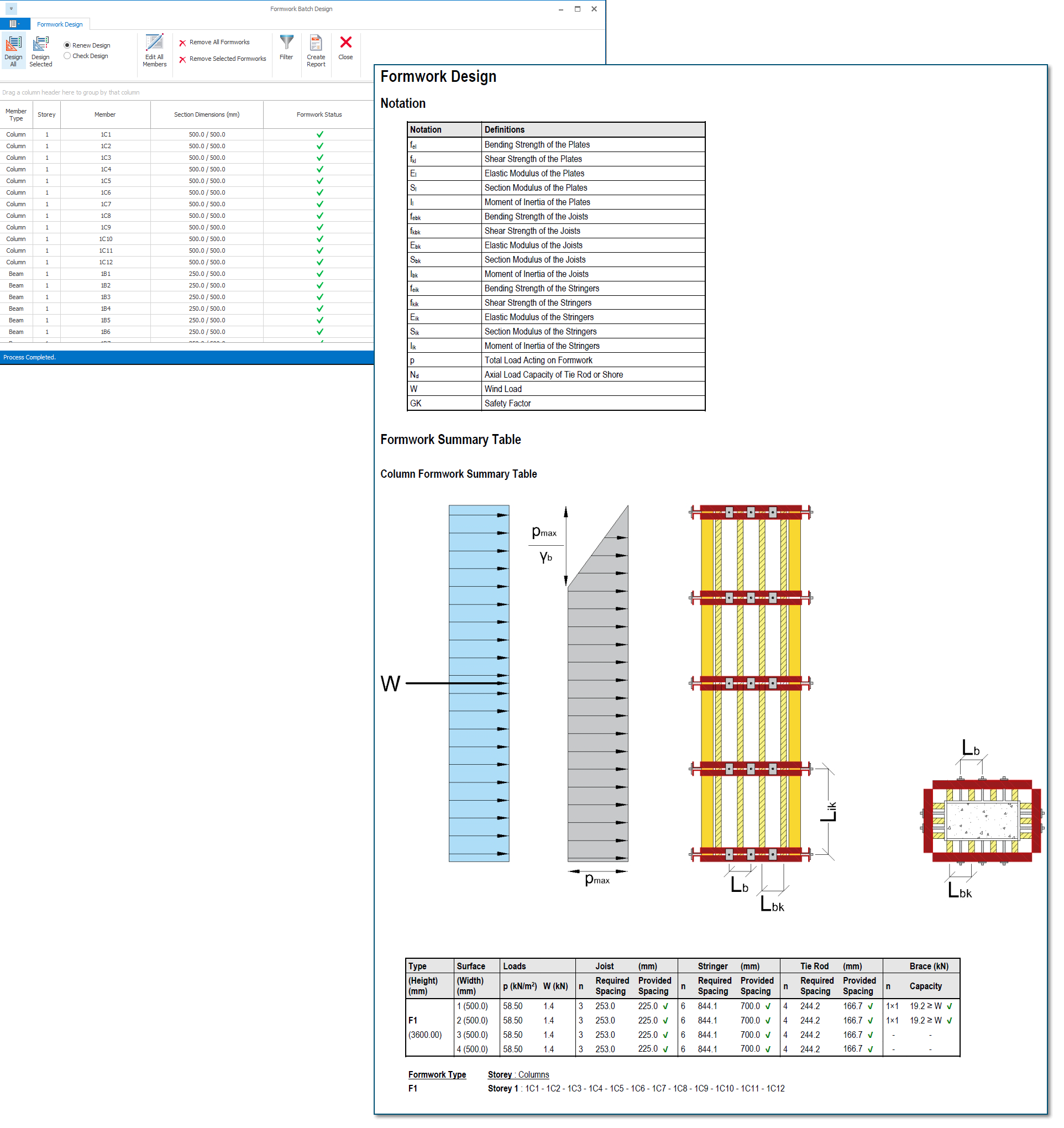 3. Click “Design All” to design all formworks on the list. ProtaStructure will automatically group the formworks by checking their geometry. In this way, you don’t need to provide reports for all members.