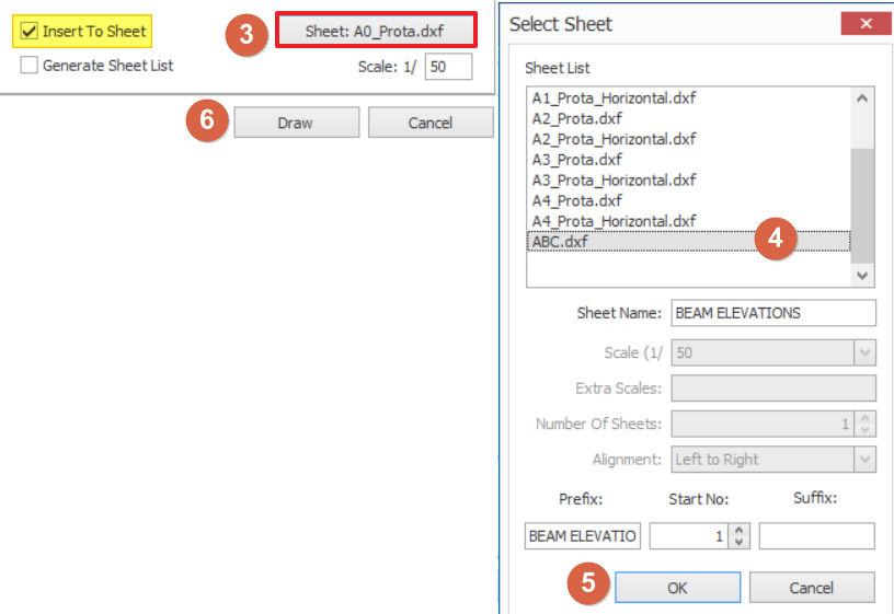 - When generating detail drawing, tick "Insert To Sheet" and select the "Sheet: ABC.dxf" to change the titleblock.