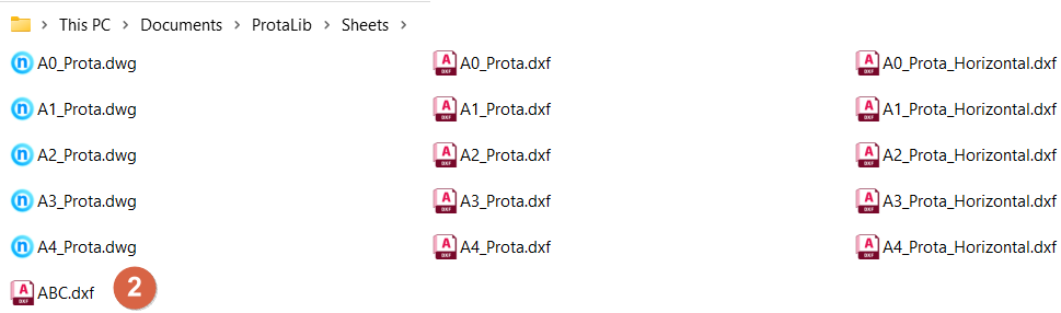 - Go to "C:Users<username>DocumentsProtaLibSheets" and make a copy of Prota original Title Block drawings.