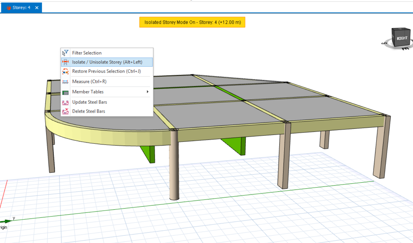 Users can isolate storey in the 3D view, allowing for clearer visualization of the members on the active storey.