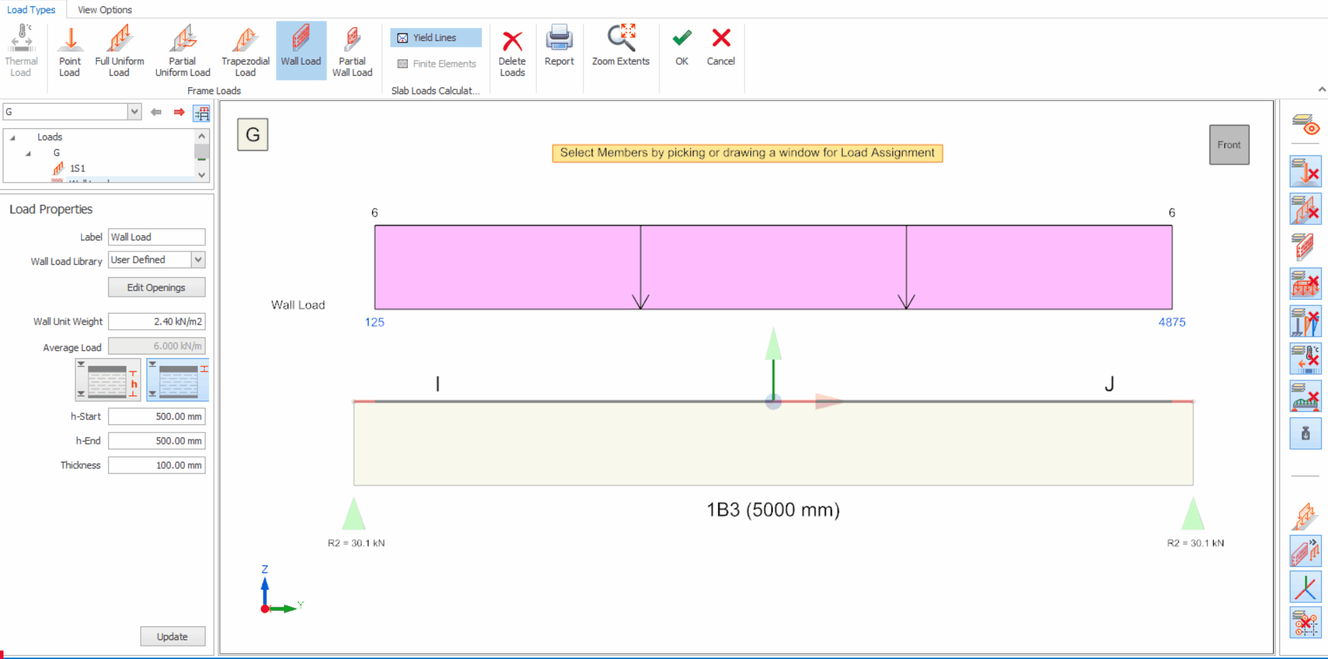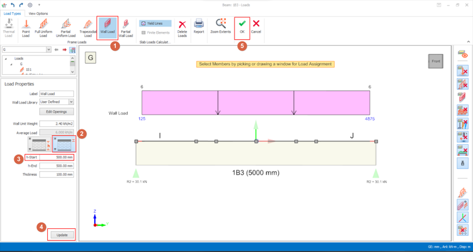 - Press ESC key to end the wall load insertion process and click OK to save & exit.