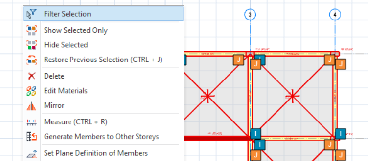 When multiple members are selected in the modelling view, "Filter Selection" will be shown in the shortcut menu (right click). "Filter Selection" helps user to filter selected members especially when the members are difficult to select.