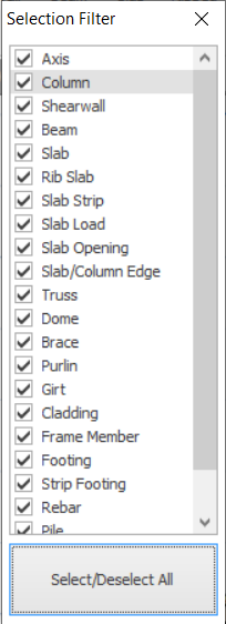 Selection filter is a filter tool that allow you to choose and filter category/elements to be picked. Selection Filter is available at Modelling tab > Selection > Selection Filter.