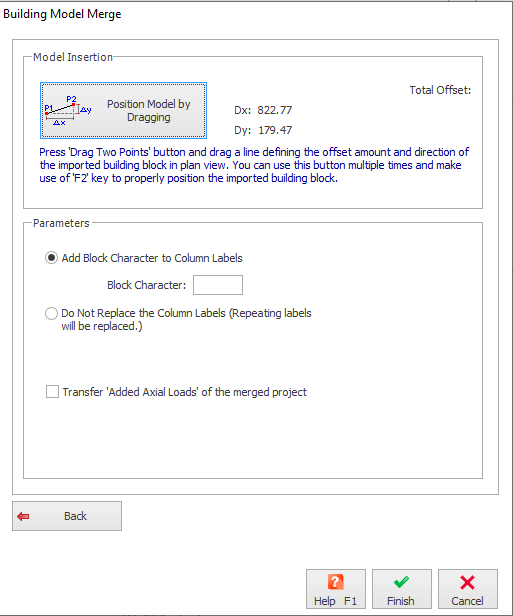 The “Merge Building Models ” dialog will appear with the options below: