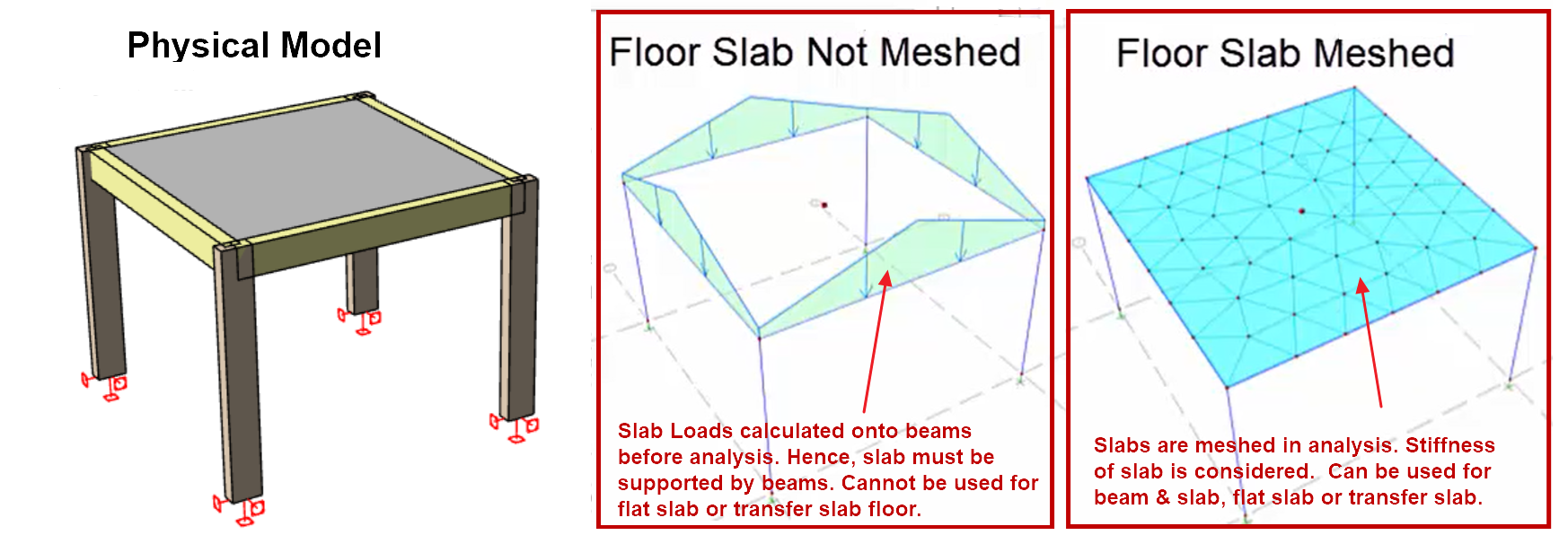 - Example, if the roof is flat slab model, you can pick only the roof slab to be meshed, while other floors slabs with beam slab layout can be left "unmeshed", resulting in a smaller & less complex analytical model.
