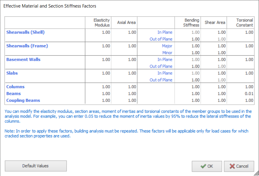 - For more explanation on stiffness modifiers refer this article: Effective Stiffness Modifiers