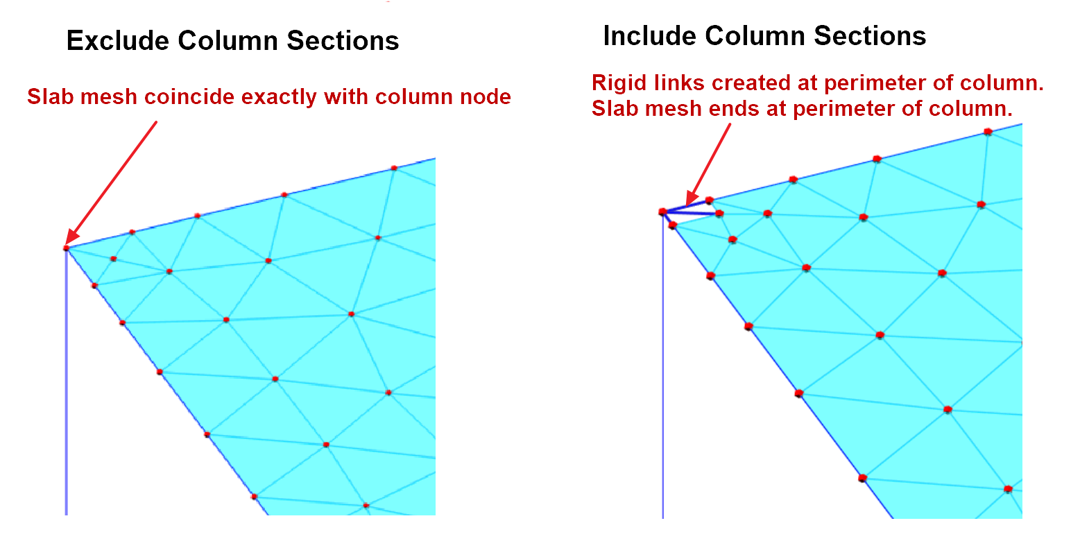 - Include Column Sections in FE Model allows rigid perimeter of the column to be considered. The slab will be meshed to the perimeter of the column rather than its centerline node.
