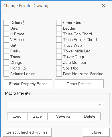 6. "Select Checked Profiles" is an extra feature to show the ticked elements in Change Profile Drawing dialogue. When a viewport is selected, by clicking "Select Checked Profiles" will auto highlight the ticked elements in red in the viewport.