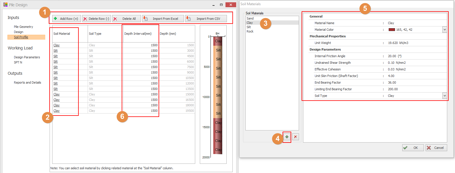 - Import from Excel/ CSV – Import Soil Profile from an Excel/ CSV file