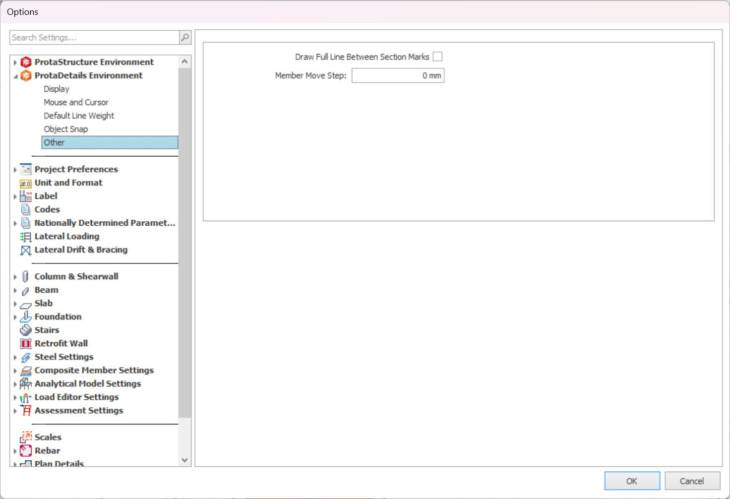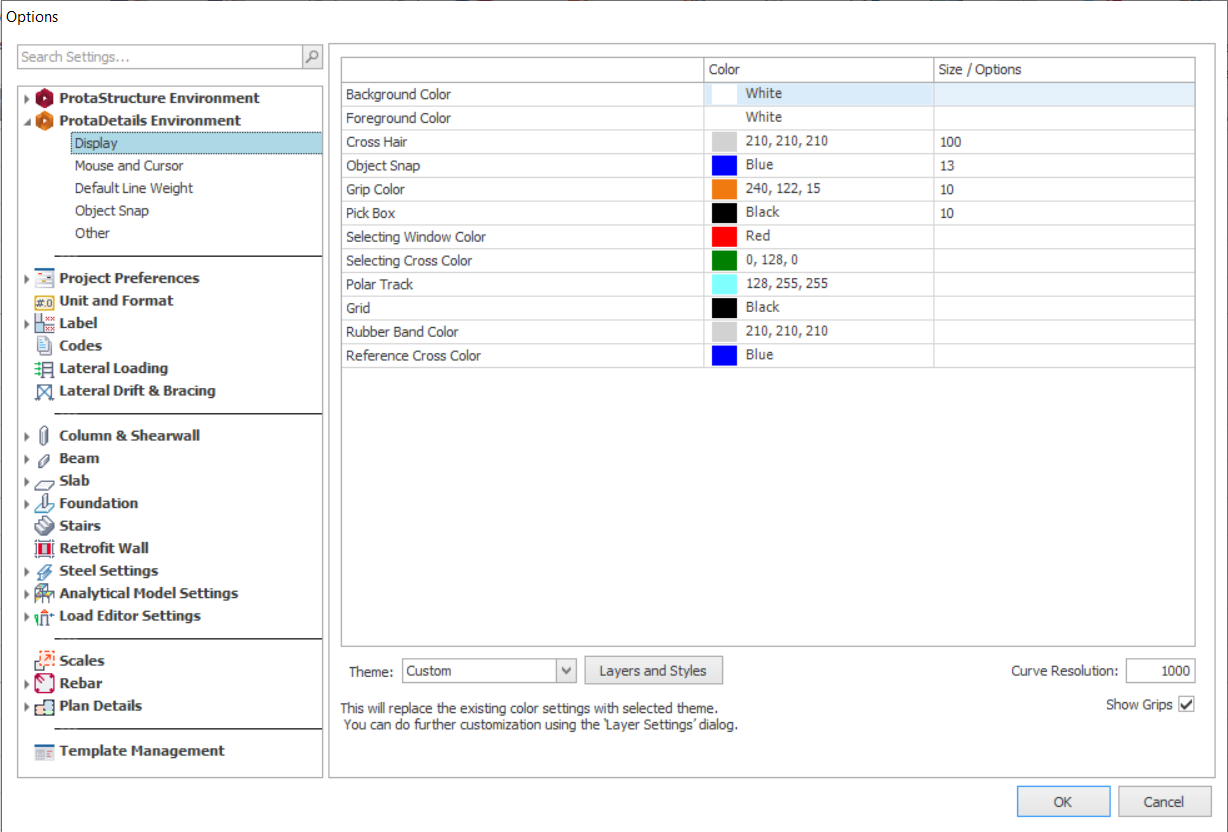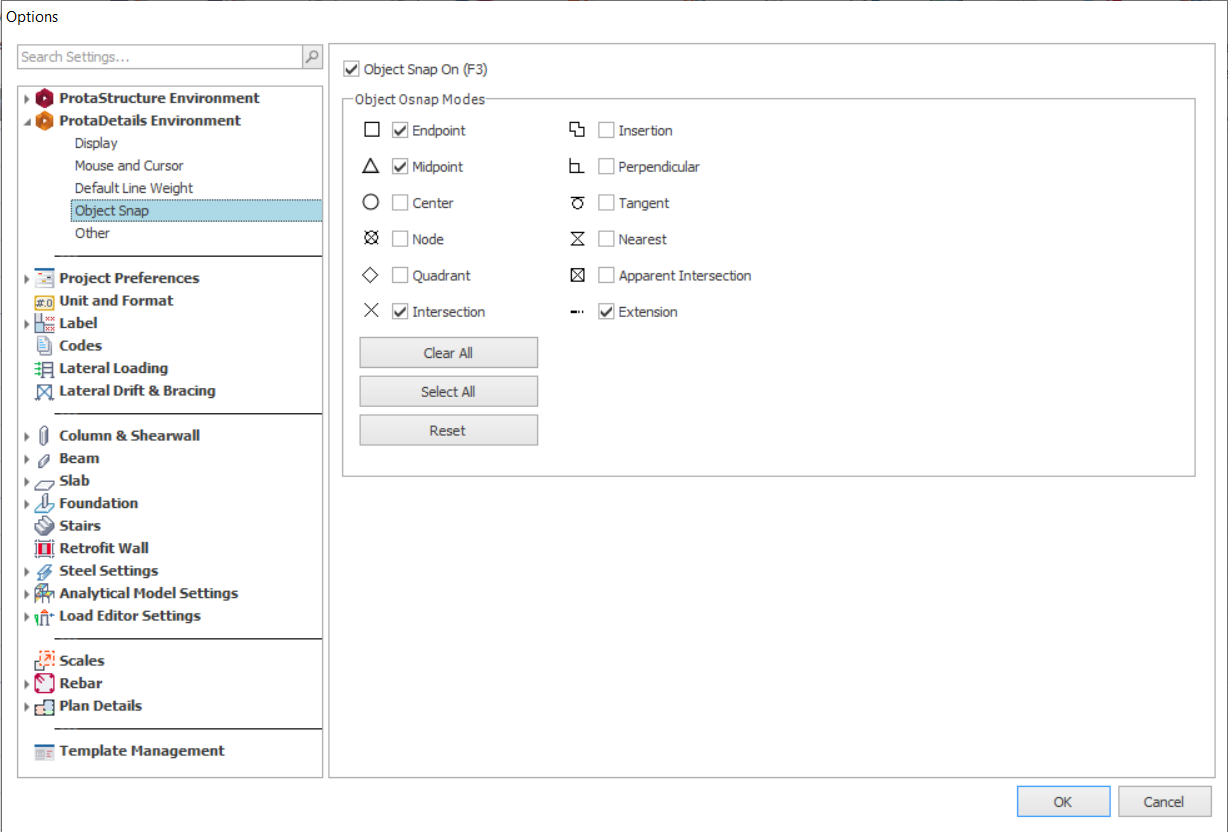 This page controls object snap setting in ProtaDetails.