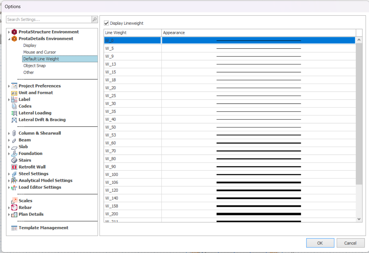 This page controls the line weight settings in ProtaDetails.