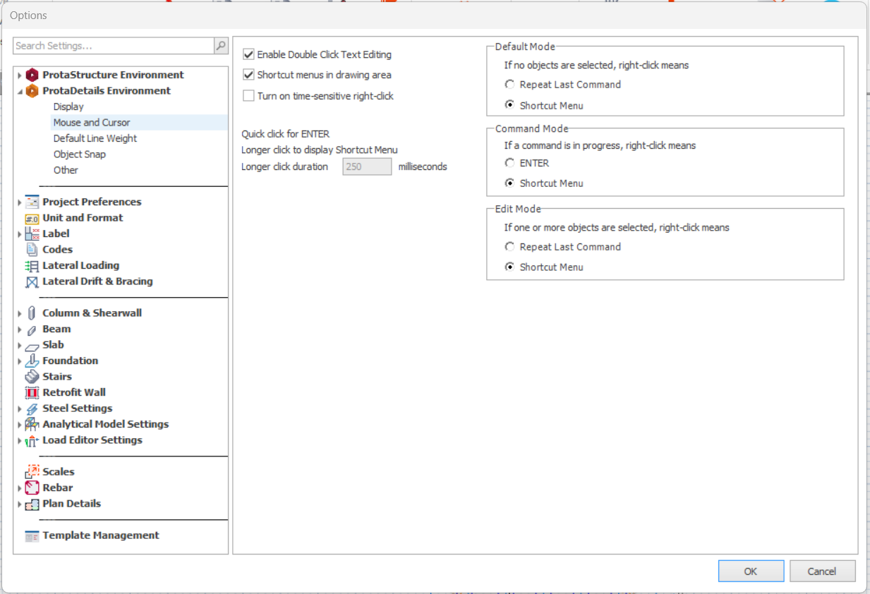 This page controls the mouse control settings in ProtaDetails.