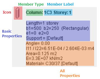 - Display Member End Labels : To display the start end "I" and the finish end "J" of the member (i.e. beam and frame only).