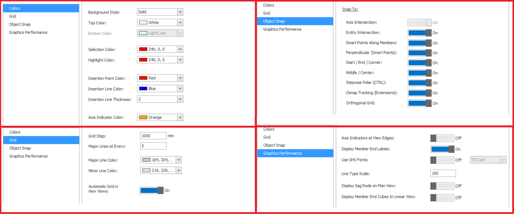 View and display settings of the ProtaStructure can be controlled in the Display Settings page under ProtaStructure Environment.