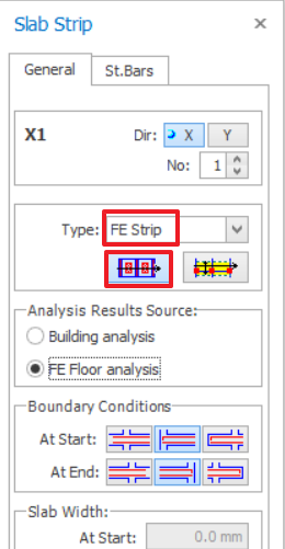 - When create the slab strip, ensure that correct Start/End condition is selected. Kindly refer to Working with Slab Strips – Boundary Conditions for more details.