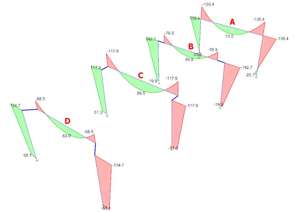- The column supporting beam B & D has the same axial load & is lower than that of A & C.