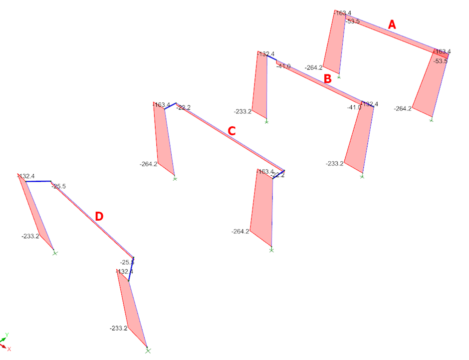 - Beam A & B : No minor moment induced as the analytical model is fully in a single vertical plane.