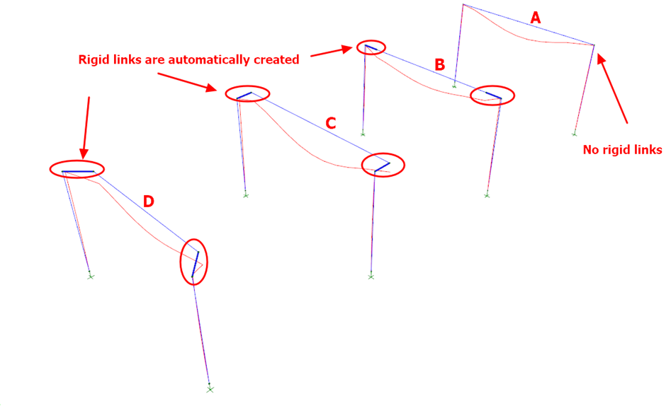 - For model A, no rigid link is created as the insertion node of column & beam is the same.