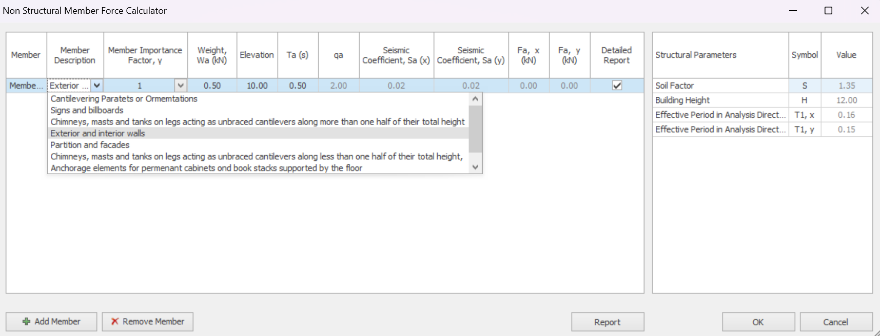 - The other parameters such as seismic coefficient and member forces are calculated according to EC8 Chapter 4.3.5