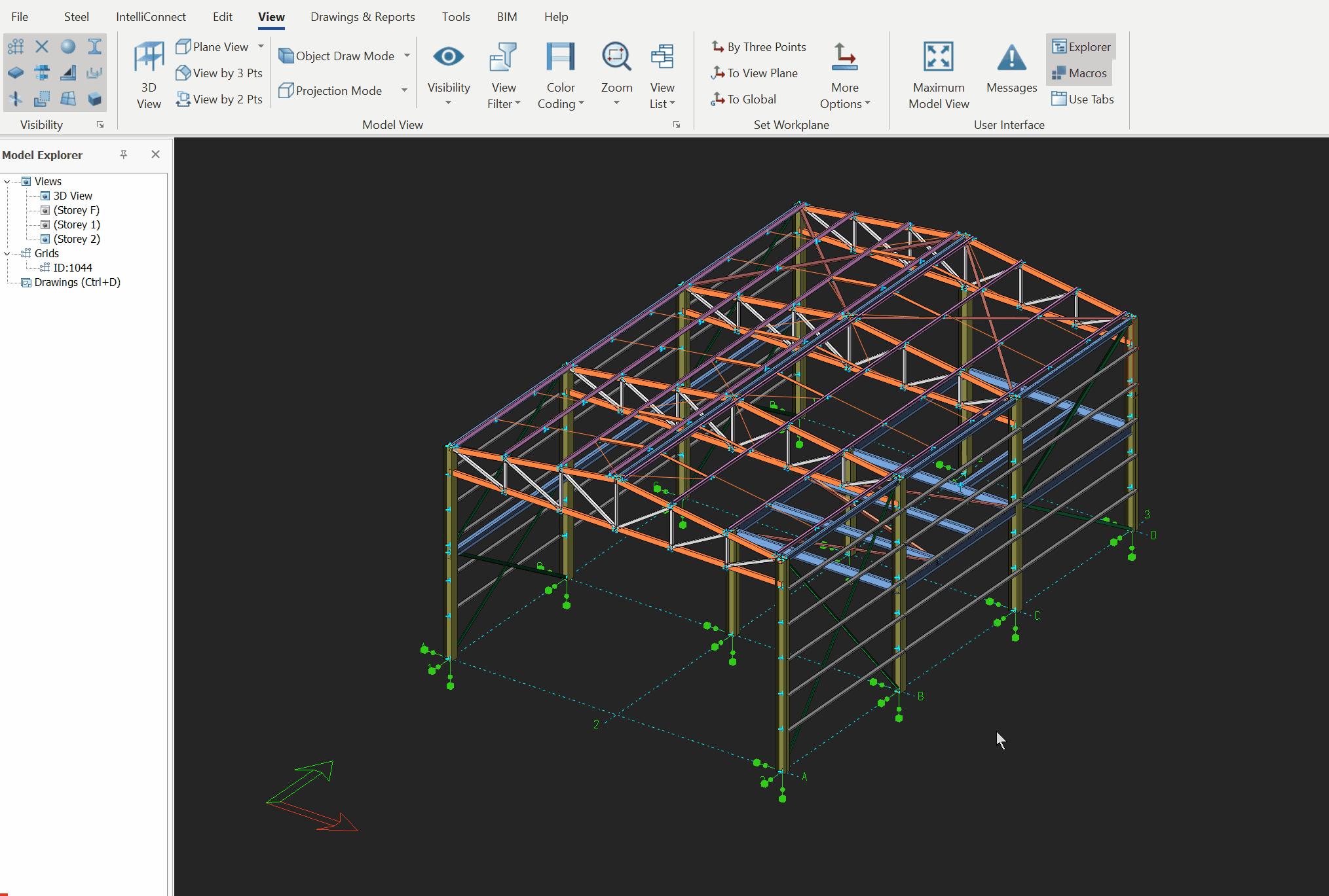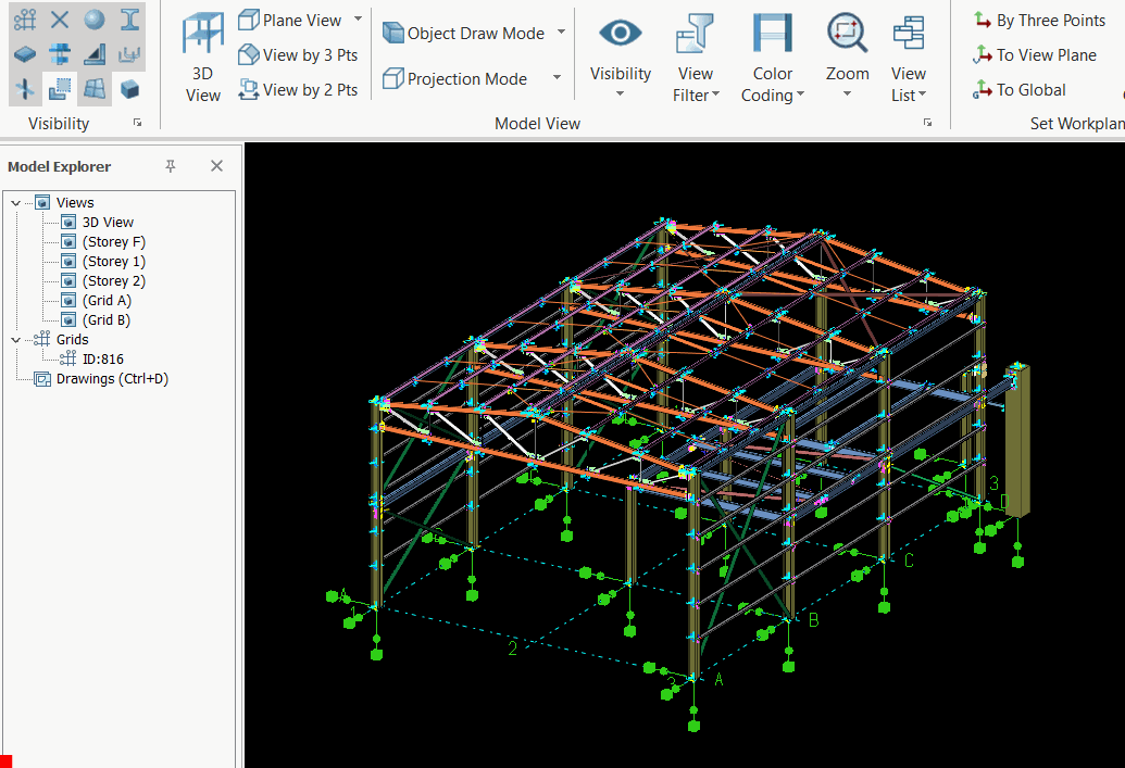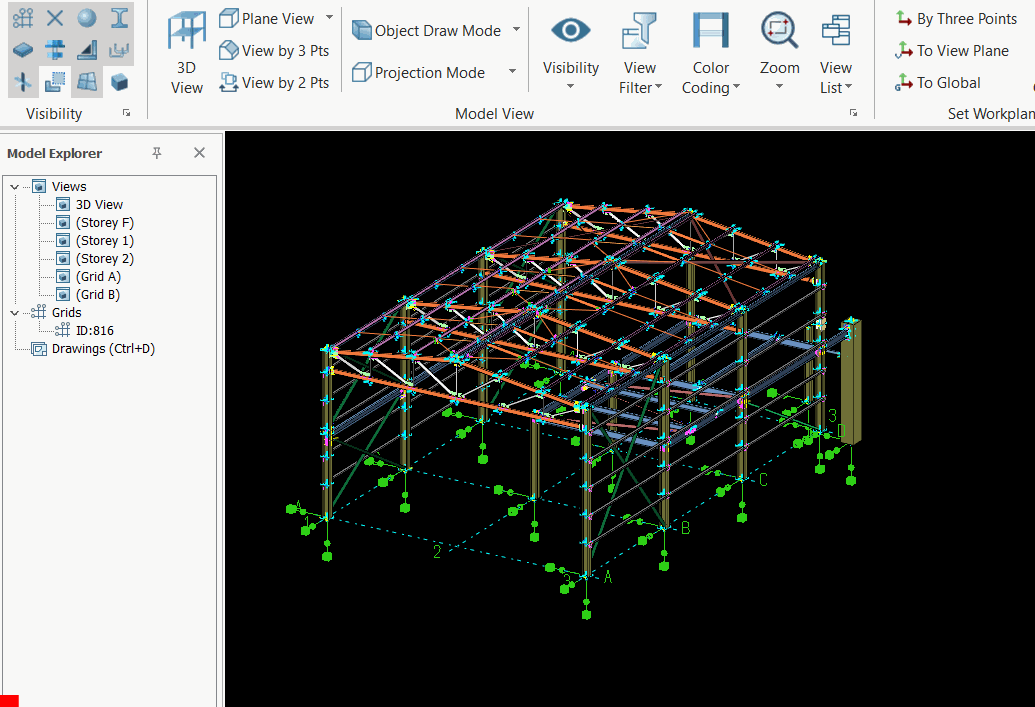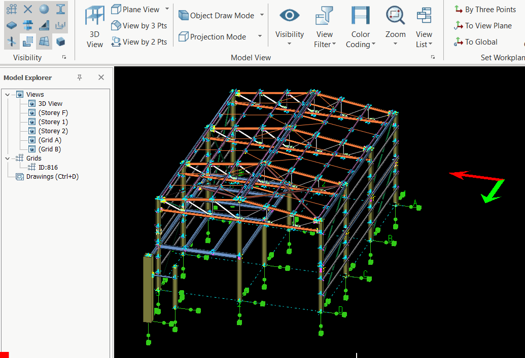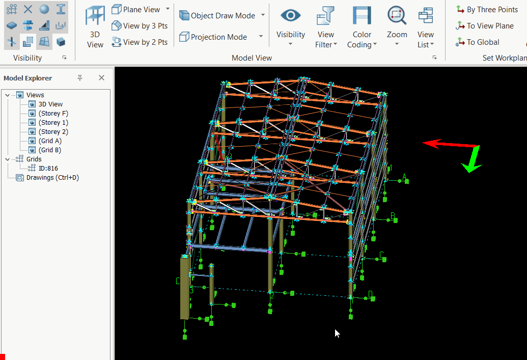 Since many commands in ProtaSteel depend on a coordinate system to work, you should set an appropriate coordinate system. By default World Coordinate System is the active work plane. To learn more about coordinate systems and workplanes read